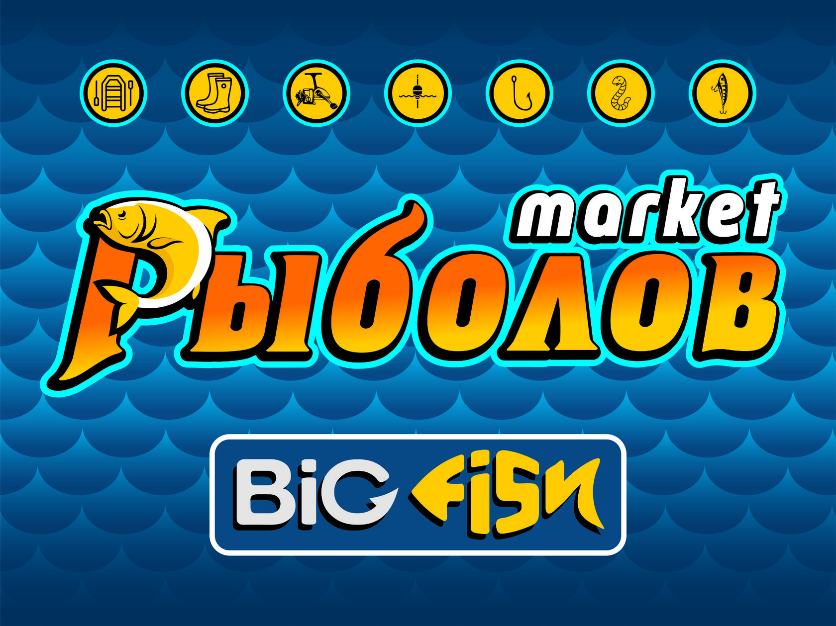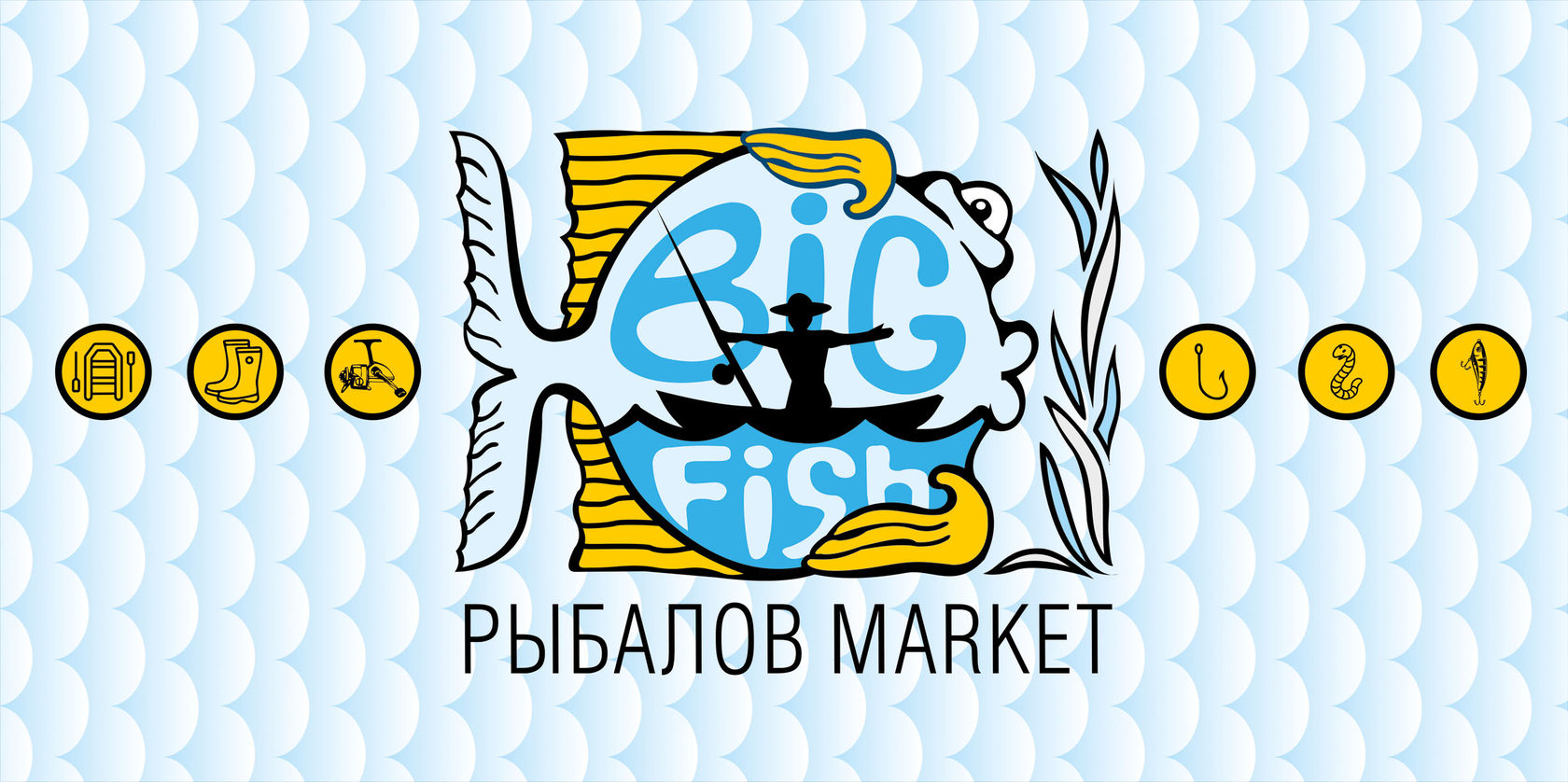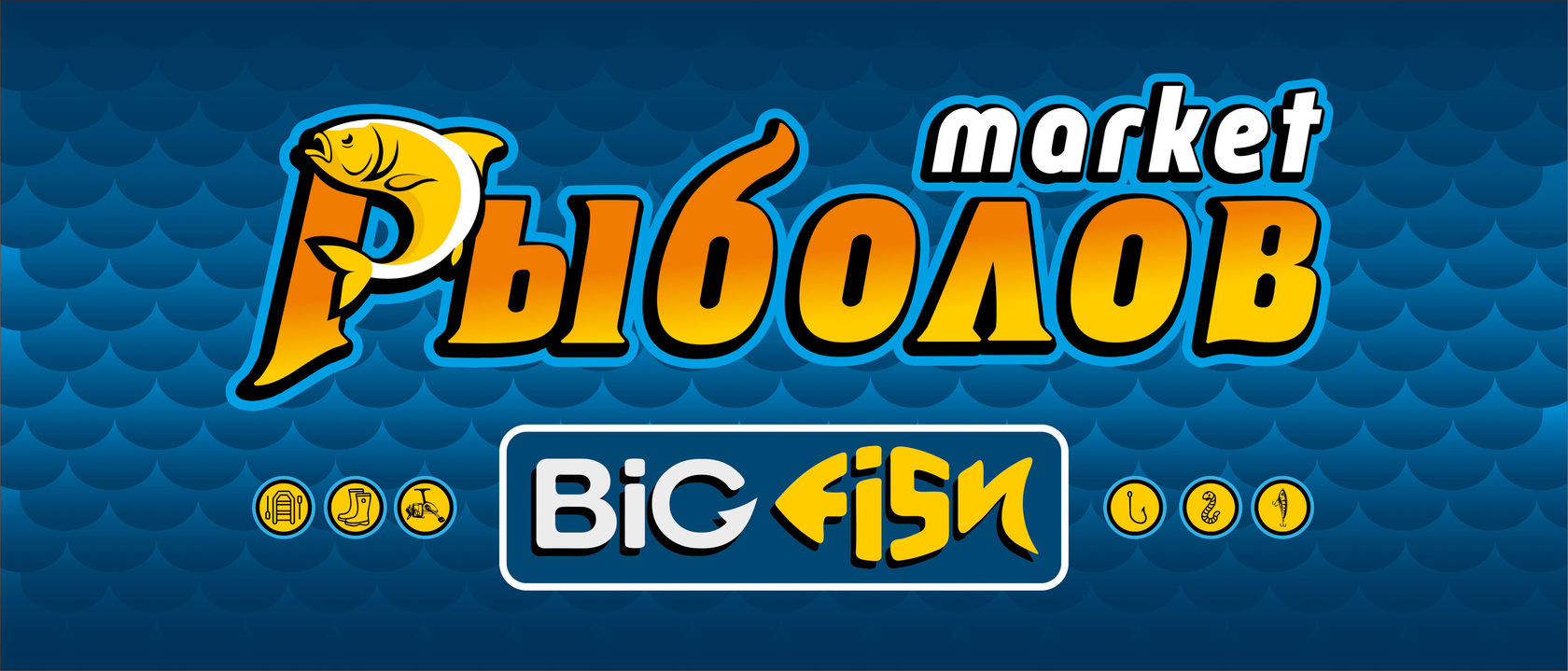Основным требованием заказчика была читабельность логотипа из большого расстояния и наличие в нем изображения рыбы, но без акцентирования на ней. Было решено использовать яркие цвета и простые формы, которые бы способствовали легкому формированию положительного отношения к бренду. В конечном итоге был утвержден выразительный юмористический логотип, отражающий название магазина, и размещенный на нежно-голубом фактурном фоне. Кроме того, логотип был дополнен иконками, отображающими основные категории товаров магазина.